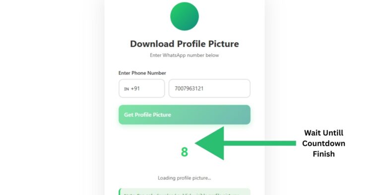 рдЬреИрд╕реЗ рд╣реА рдЖрдк рдЕрдкрдирд╛ рдореЛрдмрд╛рдЗрд▓ рдирдВрдмрд░ рдЗрдВрдЯрд░ рдХрд░рдиреЗ рдХреЗ рдмрд╛рдж GET Profile Picture рдкрд░ рдХреНрд▓рд┐рдХ рдХрд░реЗ, рдЬреИрд╕реЗ рдЖрдк рдХреНрд▓рд┐рдХ рдХрд░рдХреЗ рдереЛрдбрд╛ рд▓реЛрдбрд┐рдВрдЧ рд▓реЗрдЧрд╛ рдФрд░ 10 рд╕реЗрдХрдВрдб рдХрд╛ рдХрд╛рдЙрдВрдЯрдбрд╛рдЙрди рд╕реНрдЯрд╛рд░реНрдЯ рд╣реЛ рдЬрд╛рдпреЗрдЧрд╛ рдФрд░ рдЕрдм рдЖрдкрдХреЛ 10 рд╕реЗрдХрдВрдб рдХрд╛ рдЗрдВрддреЫрд╛рд░ рдХрд░рдирд╛ рд╣реЛрдЧрд╛, рдЬреИрд╕рд╛ рдирд┐рдЪреЗ рдкрд┐рдХреНрдЪрд░ рдореЗрдВ рджрд┐рдЦрд╛рдпрд╛ рдЧрдпрд╛ рд╣реИ┬а